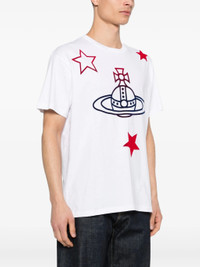 white and multicolour star print orb logo round neck - Color: WHITE/RED - Made in: Turkey - Designer Style ID: 3G010056 J00B9 A401 Composition and care Cotton: 100.0%