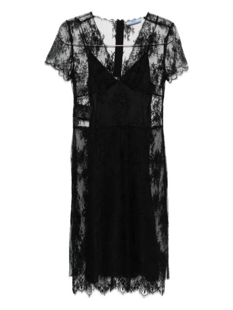 Prada Lace-overlay V-neck Dress