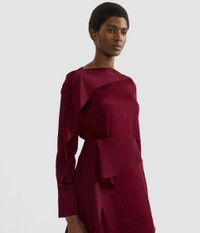 In ruby-red, this blouse showcases the fluid quality of ERDEM’s satin cady. The fabric drapes across the slash neckline and down one sleeve. - Relaxed silhouette - Fully lined - Slash neck - Long sleeves with button-fastening cuffs - Product code: HO26_T40_50256002 Fits true to size. Fabric and Care 71% Acetate, 29% Viscose. Lining: 73% Acetate, 27% Silk. Dry clean.
