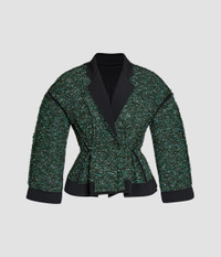 Shaped for a structured silhouette, this jacket has curved sleeves and a fitted waist. It is made from hedgerow green tweed with black accents. - Structured silhouette - Lapel collar - Centre front snap fastenings - Long sleeves - Drop shoulders - Fully lined - Product code: AW25_J24_70093007 Fits true to size. Fabric and Care 38% Polyester, 25% Wool, 16% Cotton, 10% Acrylic, 6% Polyamide, 5% Elastane. Dry clean.