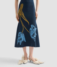 Shaping a close fit through the bodice and hips, this navy knitted dress flares to a dramatic hem. It is detailed with two oversized blue tulips, each woven in three-dimensional tubular cotton to create a sense of depth and texture. - Fit and flare silhouette - Unlined - Midi length - Crew neck - Sleeveless - Flared hem - Product code: PS26_KD6_30054001 Fits true to size. Model is 5'9 (175cm) and wears a size S. Fabric and Care 70% Viscose, 30% Polyester. Dry clean.