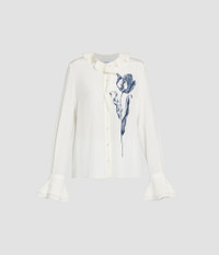 This shirt is cut from lightweight silk crepe de chine and printed with a single large tulip. The loose fit is defined by ruffled trims at the neckline and cuffs. - Relaxed fit - Ruffled collar - Long sleeves with ruffled cuffs - Centre front button fastenings - Product code: PS26_T64_51449002 Relaxed fit. If in between sizes, recommend sizing down.Model is 5'10" (178cm) and wears size UK 8. Fabric and Care 100% Silk. Dry clean.