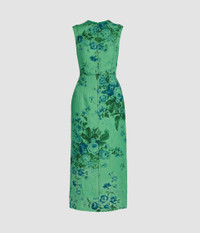 Shaped for a slim silhouette, this green dress is cut from lightweight linen and printed with bouquets of roses. It has exposed seams which add to a couture-inspired aesthetic. - Pencil silhouette - Fully lined - Midi length - Crew neck - Sleeveless - Centre back hook, eye, and concealed zip fastenings - Product code: SS26_D924_51803017 Fits true to size. Fabric and Care 100% Linen. Lining: 73% Acetate, 27% Silk. Dry clean.