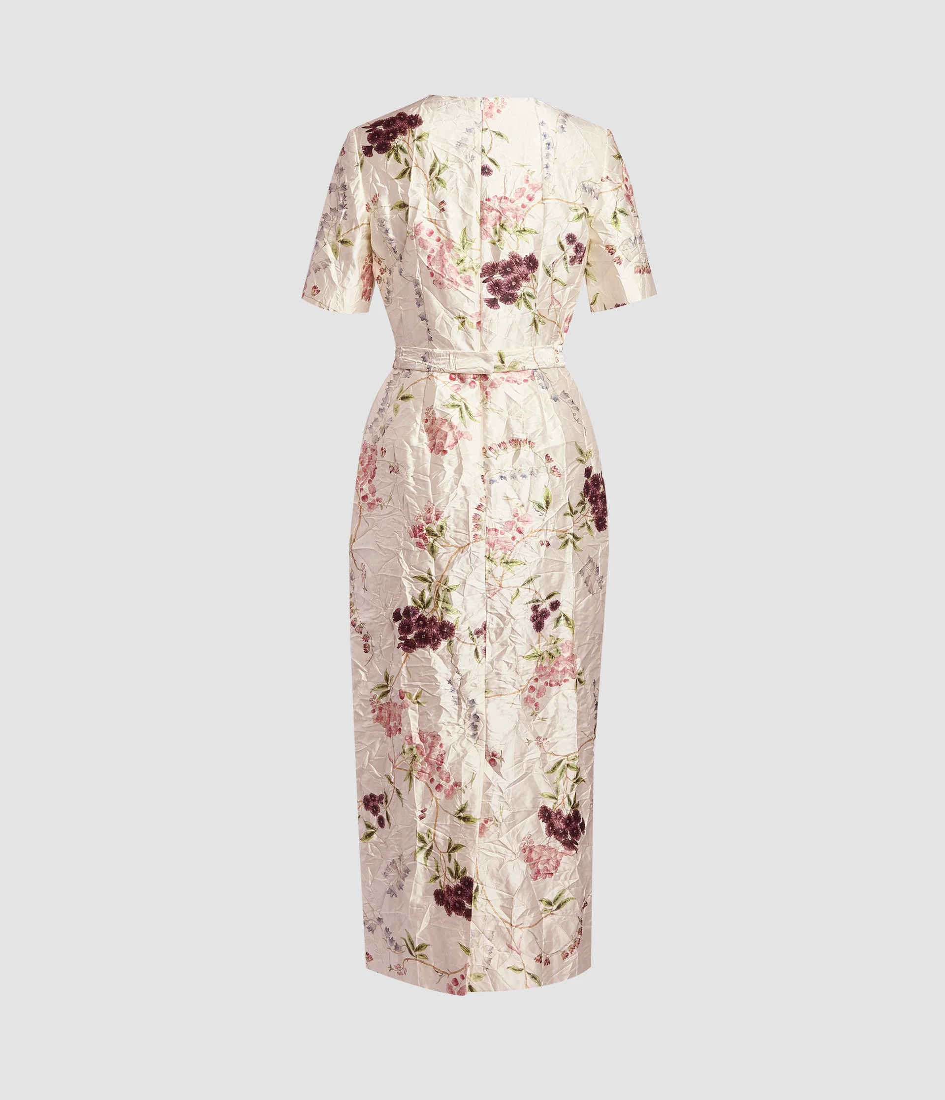 FLORAL PRINT TEXTURED SATIN MIDI PENCIL DRESS