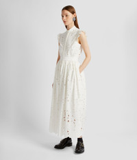 This ivory midi skirt is crafted from our floral cutwork cotton, a reinterpretation of a traditional decorative cloth. Shaping a feminine silhouette, it is gathered at the waist for irresistible volume. Size and Fit This mid-length skirt is gathered at the waist. It has hidden side seam pockets and a scalloped hem. It has hook, eye, and invisible zip fastenings at the centre back, and is fully lined in ivory cotton voile. Fits true to size. Fabric and Care 55% Cotton, 45% Polyester. Lining: 100% Cotton. Dry Clean.