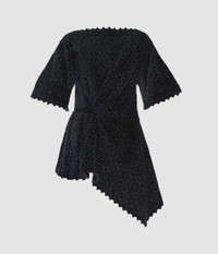 This top is made from black cotton guipure which is inspired by 17th century lace. It is artfully folded and draped to create an asymmetric silhouette. - Draped silhouette - Partially lined - Slash neck - Elbow-length wide sleeves - Centre back zip fastening - Product code: PS26_T66_51301000X Fits true to size. Fabric and Care 100% Cotton