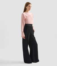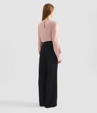 Cut from pink satin cady, this top showcases both the matte and shiny sides of the fabric. A draped detail runs along the slash neck and down one sleeve. - Relaxed silhouette - Fully lined - Slash neck - Long sleeves with button-fastening cuffs - Centre back button-fastening keyhole - Draped detail - Product code: PF25_T40_50255005 Fits true to size. Size and Fit Fits true to size. Fabric and Care 71% Acetate 29% Viscose Lining: 100% Silk