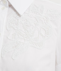 Cut from white cotton, this fitted shirt has short sleeves with flared cuffs and an embroidered flower patch at the chest. - Slim fit - Unlined - Point collar - Short sleeves with flared cuffs - Centre front button-fastening placket - Embroidered flower patch - Product code: PF25_T901_40029000 Fits true to size.Model is 5'10" (178cm) and wears a size UK 8. Fabric and Care 100% Cotton. Embroidery: 100% Cotton.