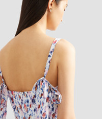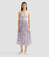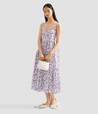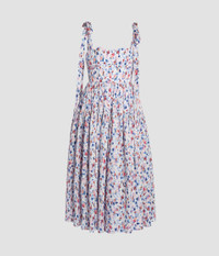 Made from lightweight cotton, this white dress is decorated with a small-scale, abstract floral in shades of blue, red and pink. It has tie-fastening shoulder straps and a full skirt. - Fit and flare silhouette - Fully lined - Midi length - Sweetheart neckline - Tie-fastening shoulder straps - Tiered skirt - Centre back hook, eye, and concealed zip fastenings - Product code: PF25_D54_50139000 Fits true to size.Model is 5'10" (178cm) and wears a size UK 8. Fabric and Care 100% Cotton. Lining: 100% Cotton. Dry clean.