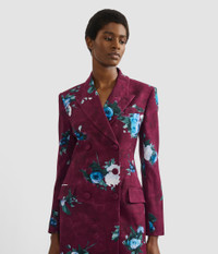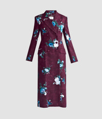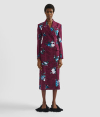 This sculpted ankle-length hourglass coat in mulberry red features abstract roses, inspired by Kaye Donachie’s artworks. - Slim silhouette - Lapel collar - Centre front button fastenings - Long sleeves with button-fastening cuffs - Flap-front jet pockets on hips - Back vent - Fully lined - Product code: AW25_C16_70226001 Fits true to size. Model is 5'11 (180cm) and wears a size UK 8. Fabric and Care 100% Viscose. Lining: 100% Silk. Patch: 100% Viscose. Dry clean.