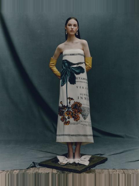 FLORAL PRINT DUCHESS SLEEVELESS MIDI DRESS