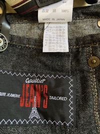 ✅PLEASE READ BEFORE BUY!! ✅(THIS IS USED ITEM 100%GENUINE VINTAGE!!! PLEASE DONT EXPECT THE ITEMS IS NEW OR 100% PERFECT!!!BEAUTY BY THE AGE!!!) ✅BUY WITH CONFIDENT!!! ✅PLEASE REFER ACTUAL MEASUREMENT GIVEN AND COMPARED WITH YOUR BEST FITTING CLOTHES... TAG BRAND: jean paul gaultier SIZE: 27 MADE: japan WIDTH : 27 inches TOP TO BOTTOM: 14.5 inches MATERIALS: cotton CONDITION: used DEFECTS: see pictures ✅ACCEPT PAYMENT: PAYPAL ONLY ✅WE’LL POST ONLY VIA : -Handling period 1-3 business days. $15 for Economy International Shipping - Registered Air Mail (14-21 days) tracking number will provided. $25 for Expedited International Shipping - DHL ( 5-7 days) tracking number will provided. ✅THANK YOU FOR VIEWING !!! ✅CHECK OUT OTHER ITEMS!!! ✅PLEASE LEAVE YOUR PHONE NUMBER ON THE NOTE WHILE MAKE A PURCHASE!! ✅NO RETURN, NO EXCHANGE OR REFUND!!!!! ✅ALL SALES ARE FINALL!!!