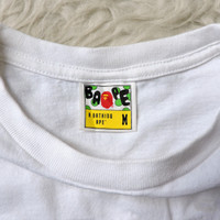 BAPE 'APE SHALL NEVER KILL APE' CAMO TYPE T-SHIRT SIZE: M MEASUREMENTS: Length: 68 cm Armpits: 50 cm Shoulder: 46 cm Sleeve: 21 cm Hem: 51 cm CONDITION: Good Condition, Pre-owned. Wear from regular use. Please refer the PICTURES for DETAIL.