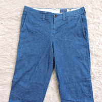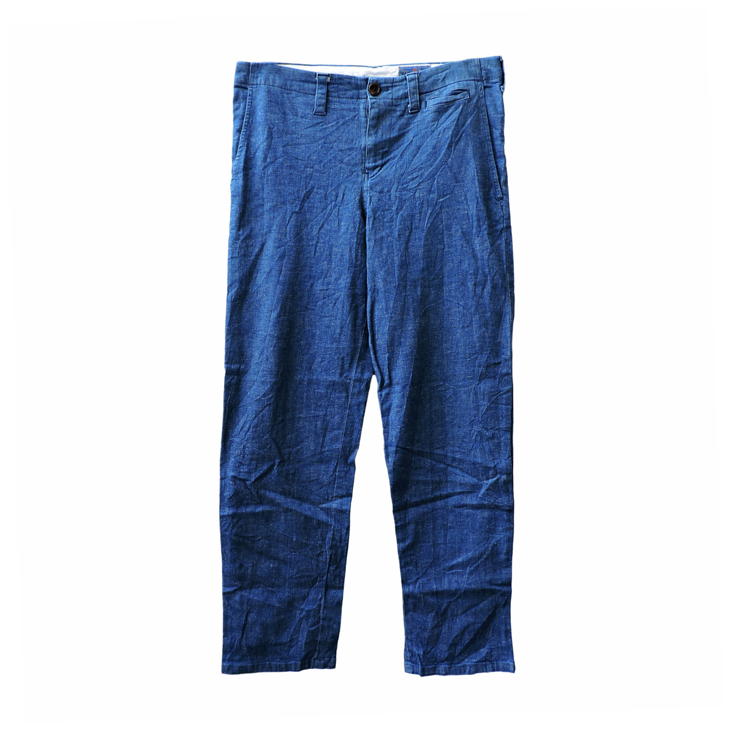 PURE INDIGO BLUE BLUE JAPAN LIGHTWEIGHT DENIM LONG PANTS SIZE: 2 MEASUREMENTS: Waist: 84 cm Length: 95 cm Front Rise: 26 cm Inseam: 74 cm Thigh: Ask cm Knee: Ask cm Leg Opening: 19 cm CONDITION: Good Condition, Pre-owned. Wear from regular use. Please refer the PICTURES for DETAIL.