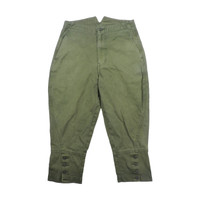 COMME DES GARÇONS 2010 MILITARY CANVAS JODHPURS PANTS SIZE: S MEASUREMENTS: Waist: 76 cm Length: 80 cm Front Rise: 30 cm Inseam: 53 cm Thigh: 30 cm Knee: 25 cm Leg Opening: 18 cm CONDITION: Good Condition, Pre-owned. Wear from regular use. Please refer the PICTURES for DETAIL.