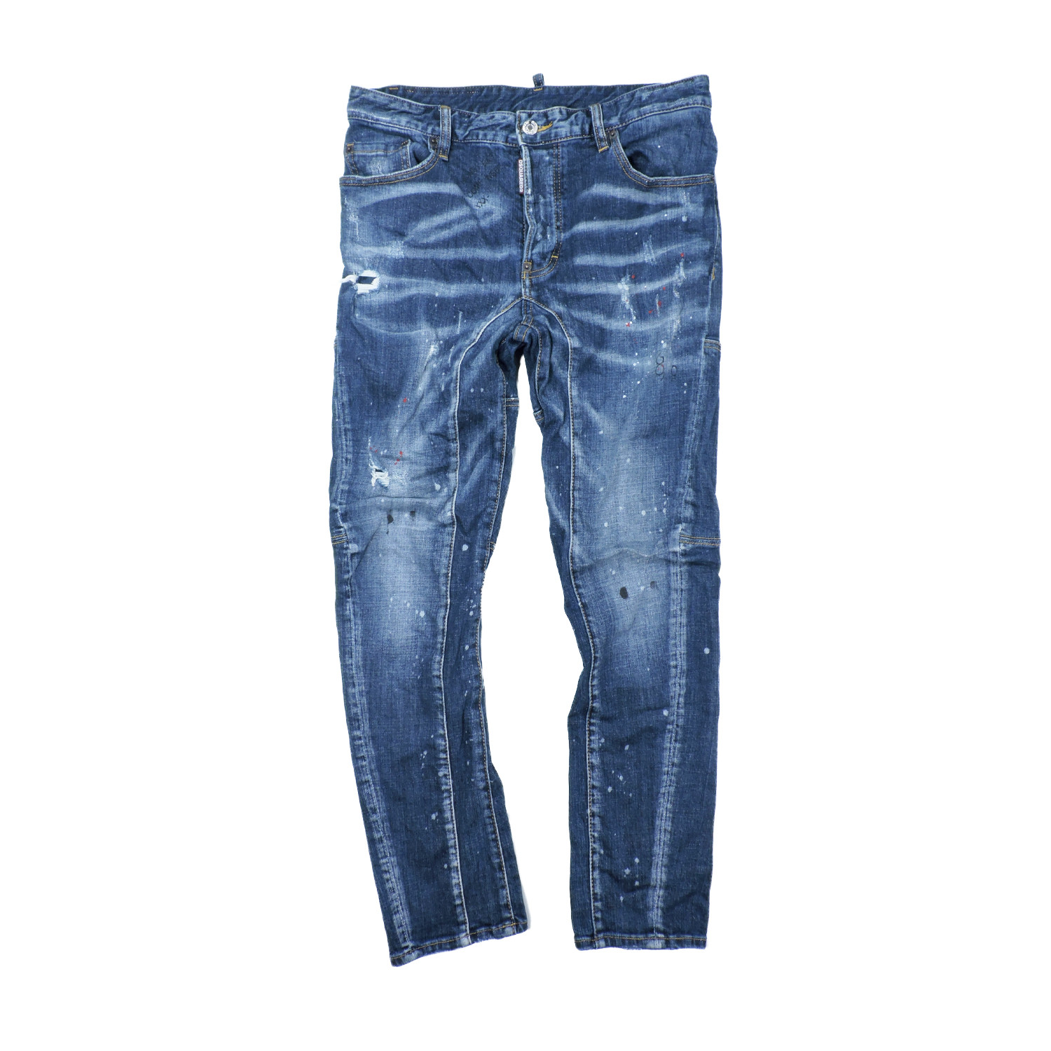 DSQUARED² BIKER DISTRESSED SLIM JEAN INDIGO BLUE WASH SPLATTER DENIM LONG PANTS SIZE: 48 MEASUREMENTS: Waist: Ask cm Length: Ask cm Front Rise: Ask cm Inseam: Ask cm Thigh: Ask cm Knee: Ask cm Leg Opening: Ask cm CONDITION: Good Condition, Pre-owned. Wear from regular use. Please refer the PICTURES for DETAIL.