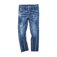 DSQUARED² BIKER DISTRESSED SLIM JEAN INDIGO BLUE WASH SPLATTER DENIM LONG PANTS
