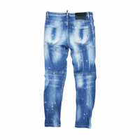 DSQUARED² CLASSIC KENNY TWIST JEAN BIKER DISTRESSED INDIGO BLUE WASH SPLATTER DENIM LONG PANTS
