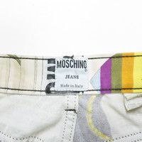 MOSCHINO JEANS POP ART ALL OVERPRINT DENIM PANTS SIZE: 26 MEASUREMENTS: Waist: 64 cm Hip: Ask cm Length: 97 cm Front Rise: 28.5 cm Inseam: 70 cm Thigh: Ask cm Knee: Ask cm Leg Opening: 16 cm CONDITION: Good Condition, Pre-owned. Wear from regular use. Please refer the PICTURES for DETAIL.