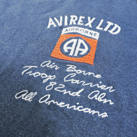 AVIREX AIRBORNE 82ND ABN PARATROOPER FRANCE RESISTENCE 40’S NORMANDY BLUE T-SHIRT
