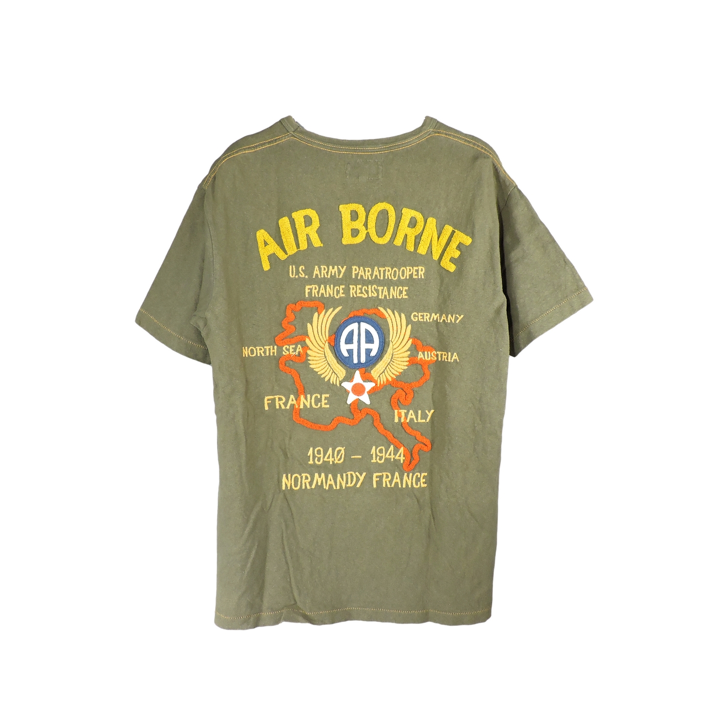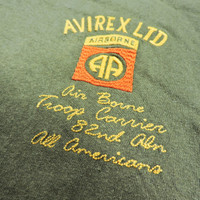AVIREX AIRBORNE 82ND ABN PARATROOPER FRANCE RESISTENCE 40’S NORMANDY GREEN T-SHIRT