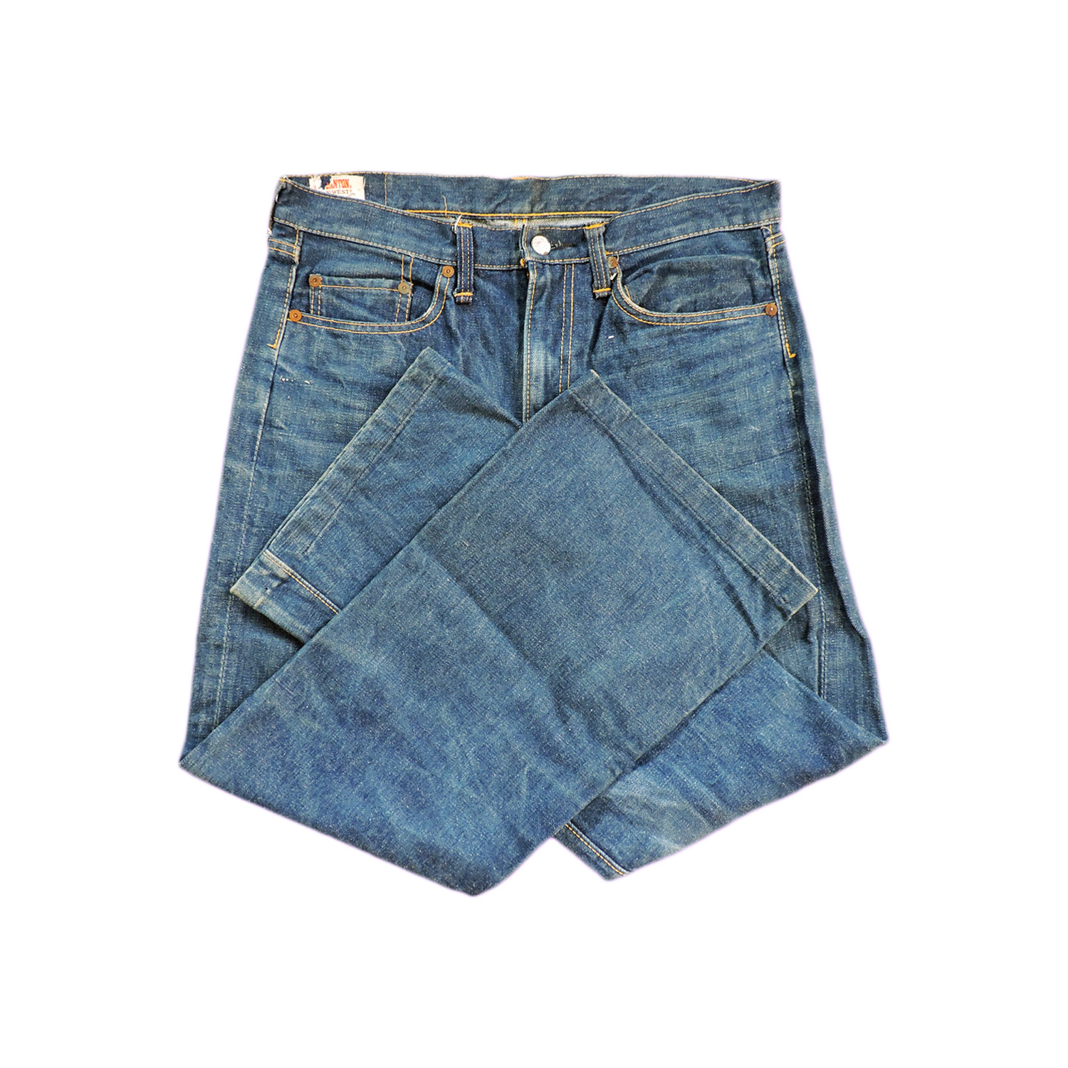CANTON X-WEST SAILOR LOT 1251T DENIM LONG PANTS SIZE: 31 MEASUREMENTS: Waist: 85 cm Length: 94 cm Front Rise: 24 cm Inseam: 73 cm Thigh: Ask cm Knee: Ask cm Leg Opening: 25 cm CONDITION: Good Condition, Pre-owned. Wear from regular use. Please refer the PICTURES for DETAIL.