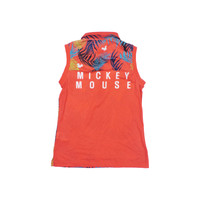 DISNEY MICKEY MOUSE LEAF PATTERN SLEEVELESS POLO SHIRT