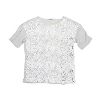 FABIANA FILIPPI CROCHET PATTERN BLOUSE Silk blend blouse detailed with front cotton crochet decoration, round collar, drop shoulder and short sleeves. SIZE: S MEASUREMENTS: Length: Ask cm Armpits: Ask cm Shoulder: Ask cm Sleeve: Ask cm Hem: Ask cm CONDITION: Good Condition, Pre-owned. Wear from regular use. Please refer the PICTURES for DETAIL.
