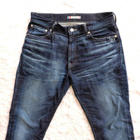JAPAN BLUE JEANS DENIM LONG PANTS SIZE: 32 MEASUREMENTS: Waist: 85 cm Length: 109 cm Front Rise: 25 cm Inseam: 83 cm Thigh: Ask cm Knee: Ask cm Leg Opening: 19 cm CONDITION: Good Condition, Pre-owned. Wear from regular use. Please refer the PICTURES for DETAIL.
