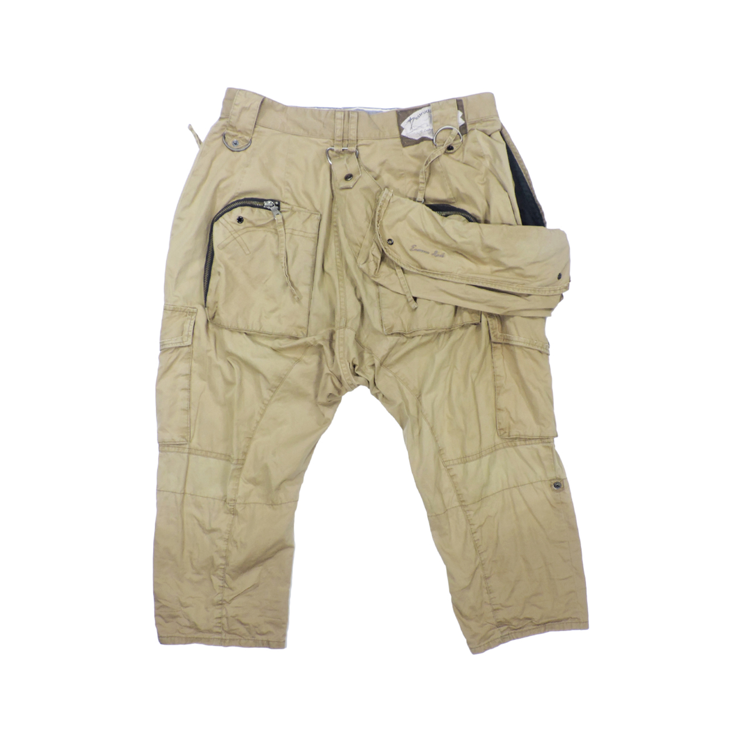 PPFM DESTRUCTPRODUCT PARACHUTE MULTI POCKET BAGGY CARGO PANTS SIZE: S MEASUREMENTS: Waist: 80 cm Length: 79 cm Front Rise: 37 cm Inseam: 47 cm Thigh: 34 cm Knee: 22 cm Leg Opening: 19 cm CONDITION: Good Condition, Pre-owned. Wear from regular use. Please refer the PICTURES for DETAIL.