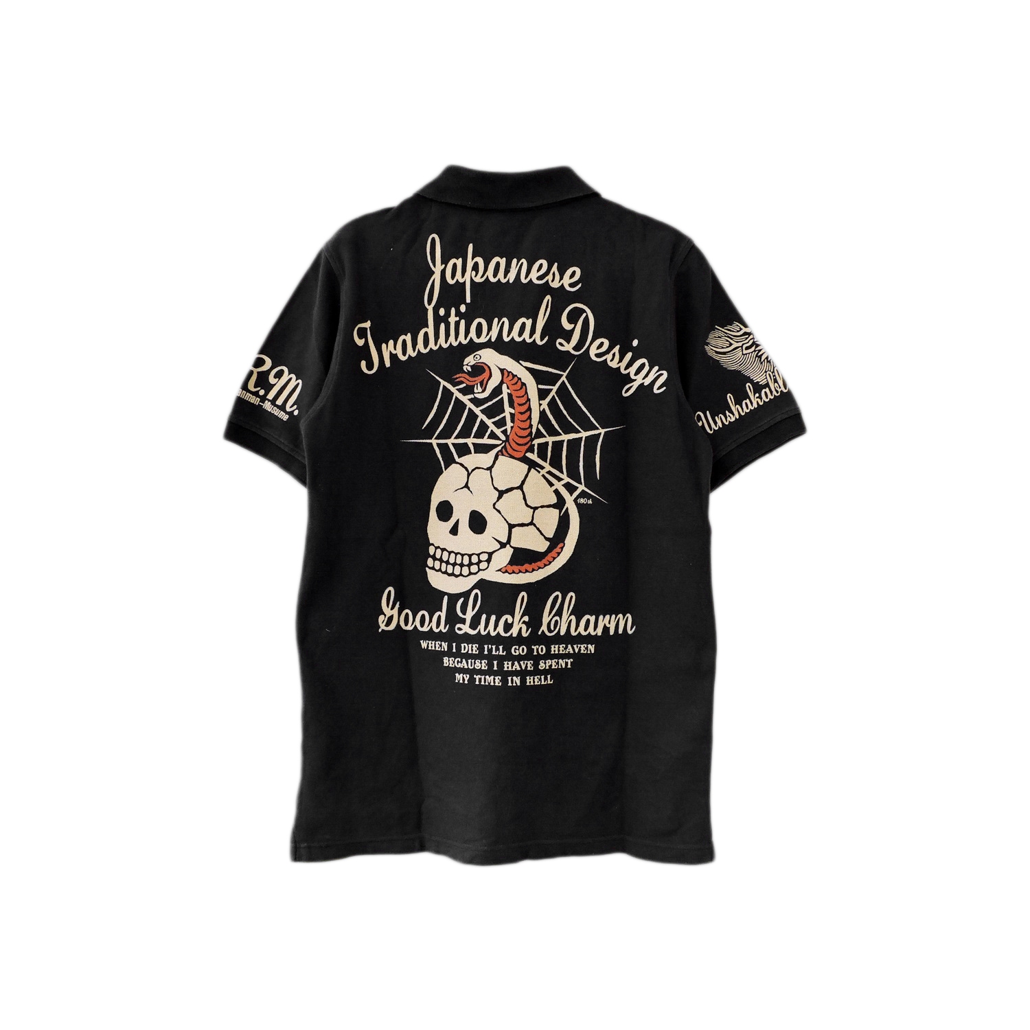 TED COMPANY TEDMAN BAKURETSU RANMAN MUSUME SKULL SKELETON BONE SNAKE SPIDER WEB ‘GOOD LUCK CHARM’ POLO SHIRT SIZE: M MEASUREMENTS: Length: 70 cm Armpits: 50 cm Shoulder: Ask cm Sleeve: Ask cm Hem: Ask cm CONDITION: Good Condition, Pre-owned. Wear from regular use. Please refer the PICTURES for DETAIL.