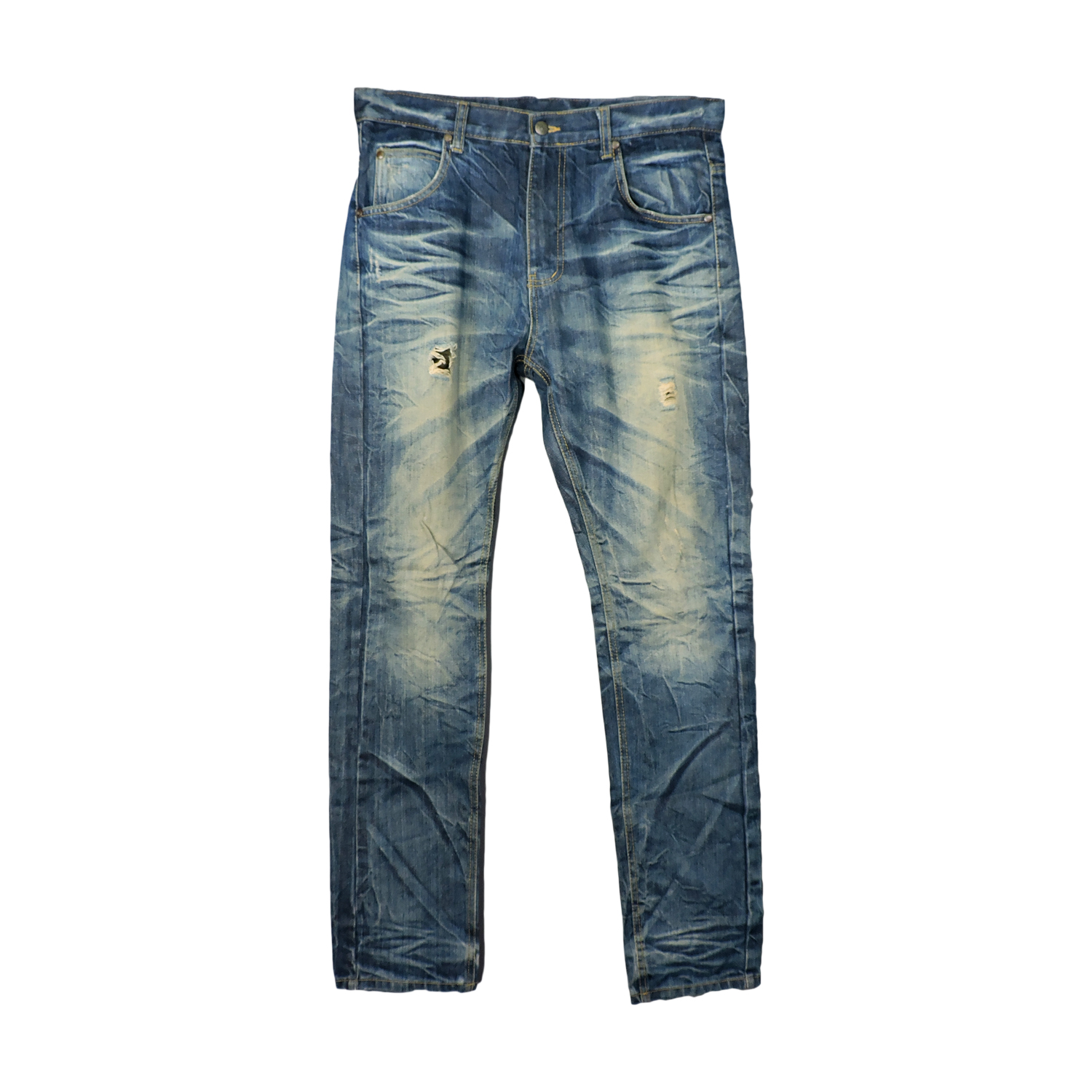 WRANGLER BLUE BELL SANFORIZED DENIM LONG PANTS SIZE: 32 MEASUREMENTS: Waist: 88 cm Length: 110 cm Front Rise: 30 cm Inseam: 85 cm Thigh: Ask cm Knee: Ask cm Leg Opening: 17 cm CONDITION: Good Condition, Pre-owned. Wear from regular use. Please refer the PICTURES for DETAIL.
