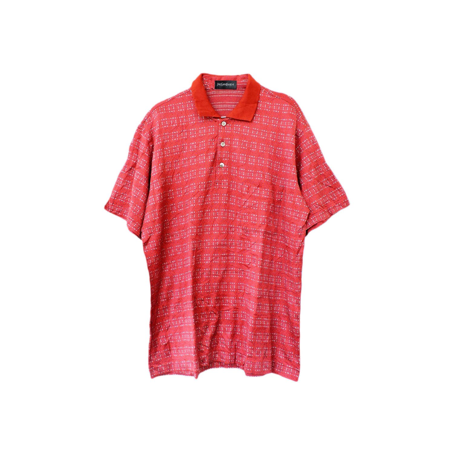 YVES SAINT LAURENT YSL SQUARE PATTERNS POLO SHIRT SIZE: L MEASUREMENTS: Length: 72 cm Armpits: 58 cm Shoulder: 50 cm Sleeve: 24 cm Hem: 58 cm CONDITION: Good Condition, Pre-owned. Wear from regular use. Please refer the PICTURES for DETAIL.