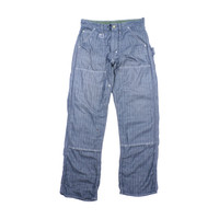 THE REAL MCCOY'S JOE MCCOY 8 HOUR UNION MADE 8HU LOT 724 DOUBLE KNEE HERRINGBONE LIGHT CHAMBRAY UTILITY TROUSERS Based on a 60s design used heavily by blue collar workers. This utlity trouser is made with lighweight chambray fabric suitable for use in the summer! SIZE: 32 MEASUREMENTS: Waist: Ask cm Length: Ask cm Front Rise: Ask cm Inseam: Ask cm Thigh: Ask cm Knee: Ask cm Leg Opening: Ask cm CONDITION: Good Condition, Pre-owned. Wear from regular use. Please refer the PICTURES for DETAIL.