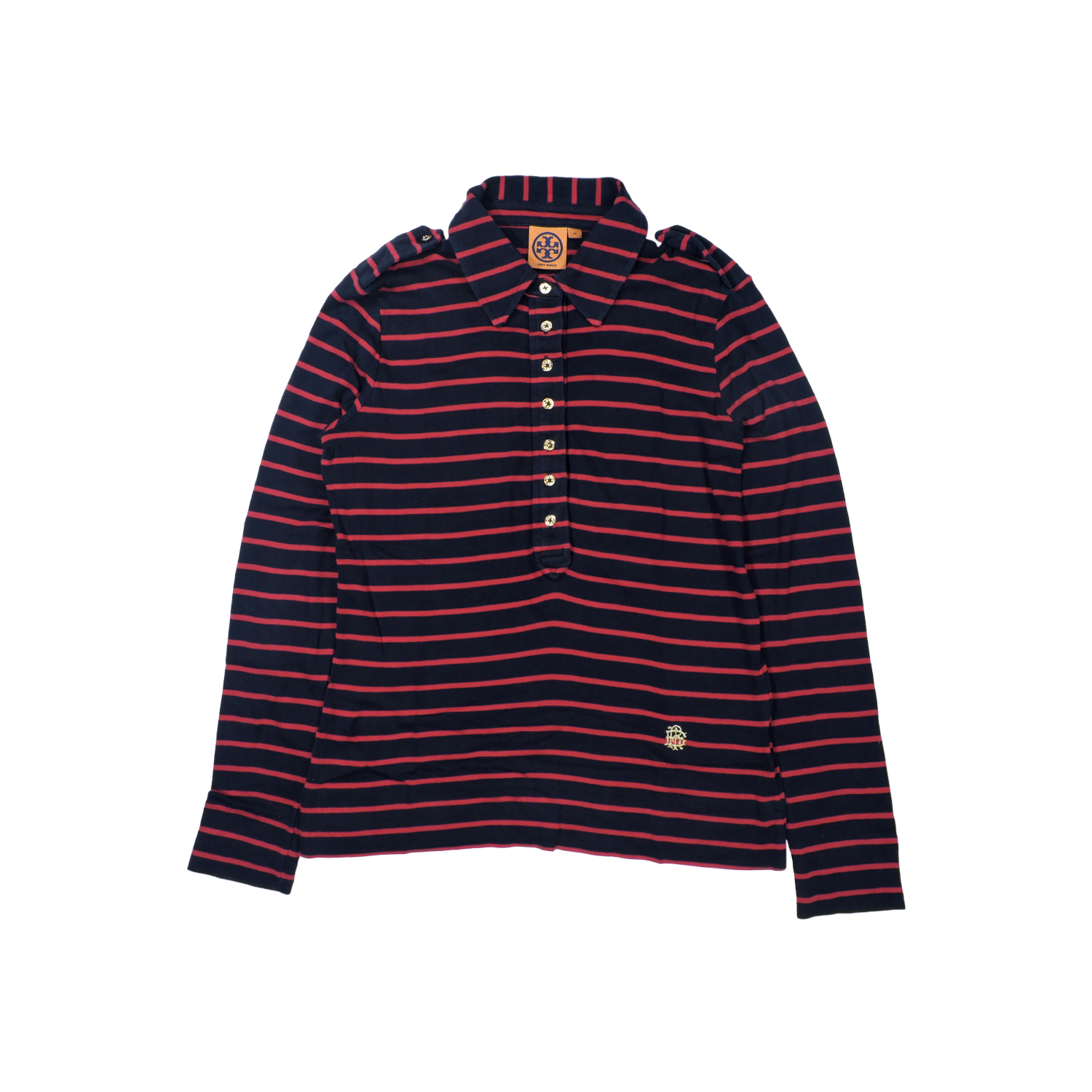 TORY BURCH POLO STRIPED SHOULDER TAB PIMA COTTON SHIRT SIZE: M MEASUREMENTS: Length: Ask cm Armpits: Ask cm Shoulder: Ask cm Sleeve: Ask cm Hem: Ask cm CONDITION: Good Condition, Pre-owned. Wear from regular use. Please refer the PICTURES for DETAIL.