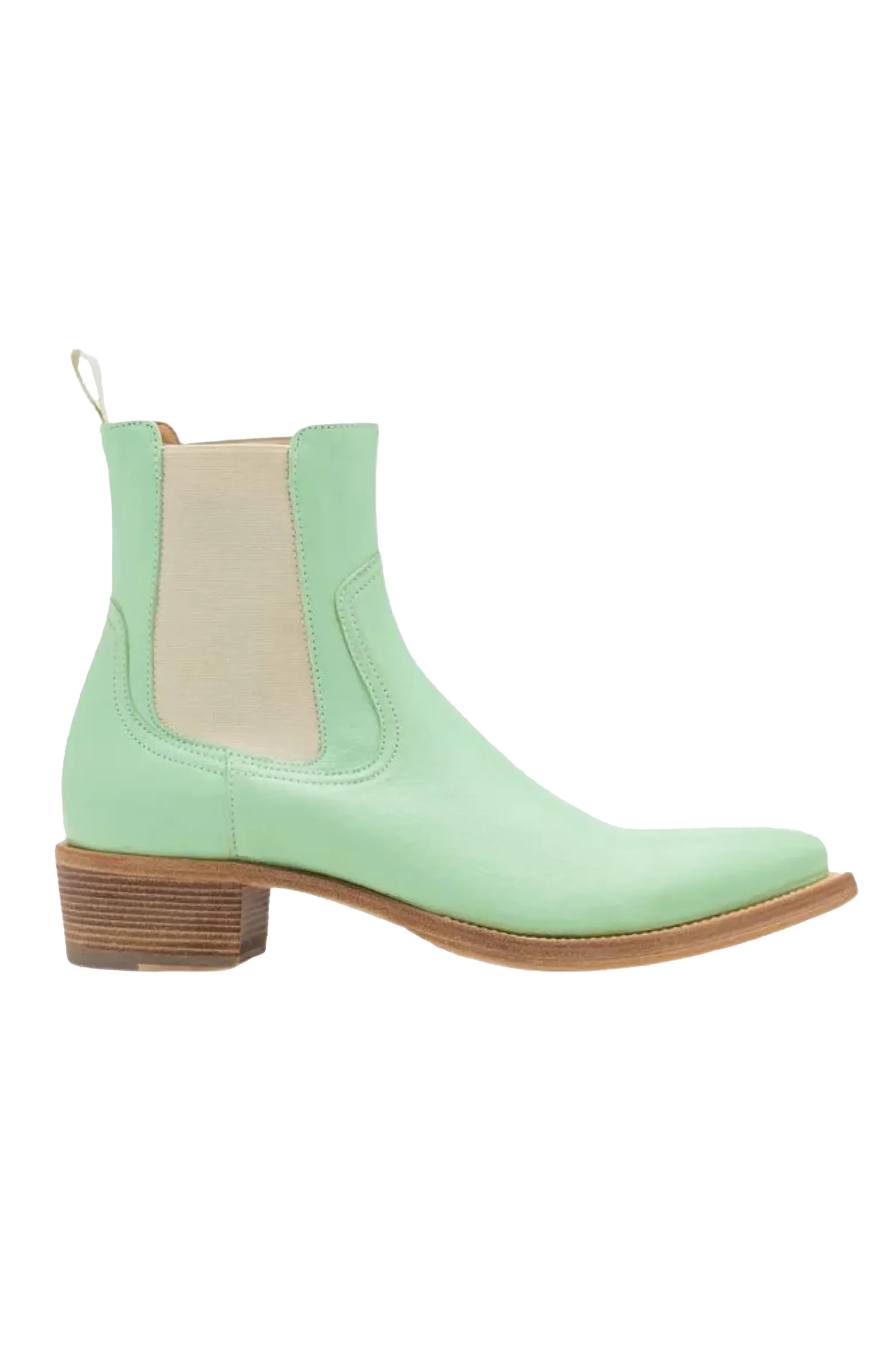 424 leather pull-on boot with contrasting elasticized side panels, low block heel, and rear pull-tab. Due to the silhouette of this shoe, we suggest going a size up. This item is final sale and is not eligible for return or exchange. DETAILS Material: Leather with leather lining Heel: 1.5" Made in Italy Product codes: - SKU: ESSX/424/FF4SMQ56APPE001619/MNT/43 - UPC: 2100001931650