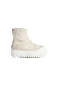 The 424 Miner Marathon Boots featuring a signature ruched-effect overlay silhouette in distressed teachnical canvas with a rounded toe, back-zip, and an exaggerated lug platform sole with a waxy dipped-effect treatment. Due to the silhouette of this shoe, we suggest going a size up. DETAILS - Overlay design - Back-zip closure - Leather lining - Waxed-effect lug sole Material: Technical Canvas Leather Lining Rubber Sole Made in Italy Product codes: - SKU: ESSX/424/SS25/FF5SMQ62BPTE002064/White/40 - UPC: 645707827743