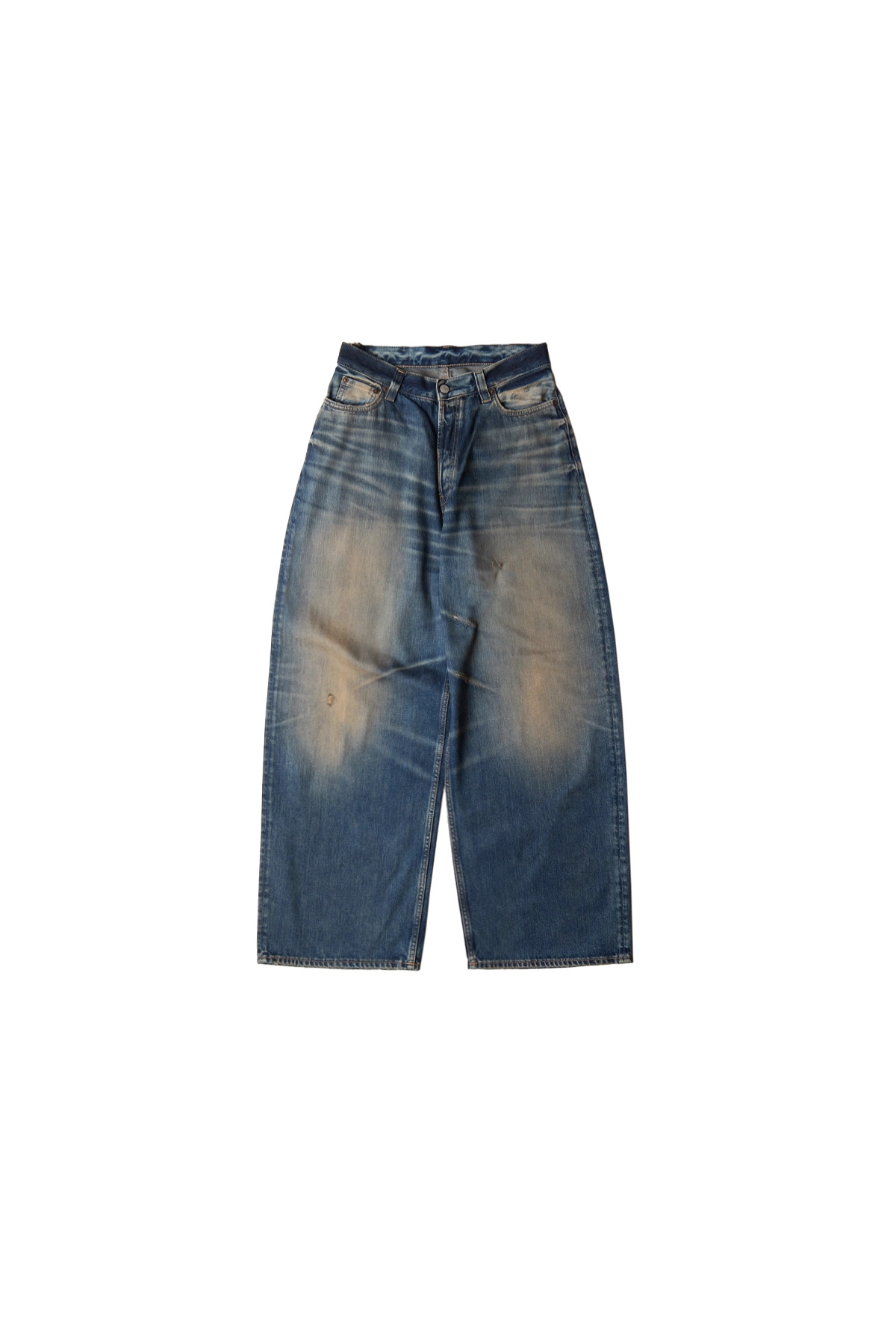 The Acne Studios 2023 Fit Rocka Wash Jeans in non-stretch denim feature a baggy fit with a mid waist, wide leg and long length, with fading throughout and five-pocket styling. DETAILS - Non-stretch denim jeans - Fading + distressing throughout - Wide-leg - Mid-rise - Belt loops - Five-pocket styling - Button fly - Leather logo patch at back - Logo-engraved silver-tone hardware - Contrast stitching in tan Sizing: - True to size Material: Cotton Made in Italy Product codes: - SKU: ESSX/ACE/AW25/C00094838/Blue/XS - UPC: 7323336825776
