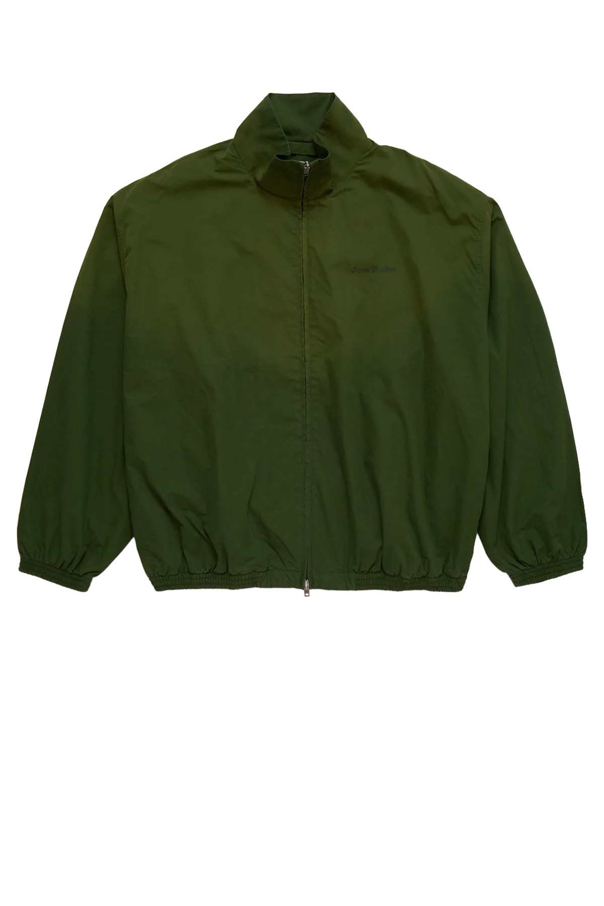 The Acne Studios Logo Zipper Jacket is a lightweight unisex poplin jacket with a relaxed, hip-length oversized fit featuring a contrast Acne Studios 1996 stamp logo at the front and across the back, two-way front-zip centre zip closure, side seam pockets, and elasticated cuffs and hem. Lined. Model is 5'10 and wears size 50 DETAILS - Unisex - Relaxed fit - Hip length - Zipper front closure - Side seam pockets - Elasticated cuffs + hem - Acne Studios stamp logo at back - Fully lined Sizing: - True to size Material: Organically Grown Cotton Lining: 82% Nylon / 18% Elastane Made in Portugal Product codes: - SKU: ESSX/ACE/AW25/B90863AAY/Green/46 - UPC: 7323336808793