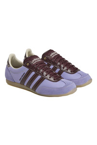 Adidas X Wales Bonner Japan reimagines the classic Japan silhouette with refined craftsmanship. This lilac and burgundy iteration features a delicate crochet insert, suede accents, and Wales Bonner's signature contrast topstitching on the heeltabs. Elevated branding completes this contemporary take on an 1980s icon, blending heritage design with modern artisanal details. Men's UK Sizing. DETAILS Contrast Topstitching Details Rubber Outsole Supplementary Laces Included Product codes: - SKU: ESSX/WAL/AW25/JR1776/Purple/5.5 - UPC: 198323411136