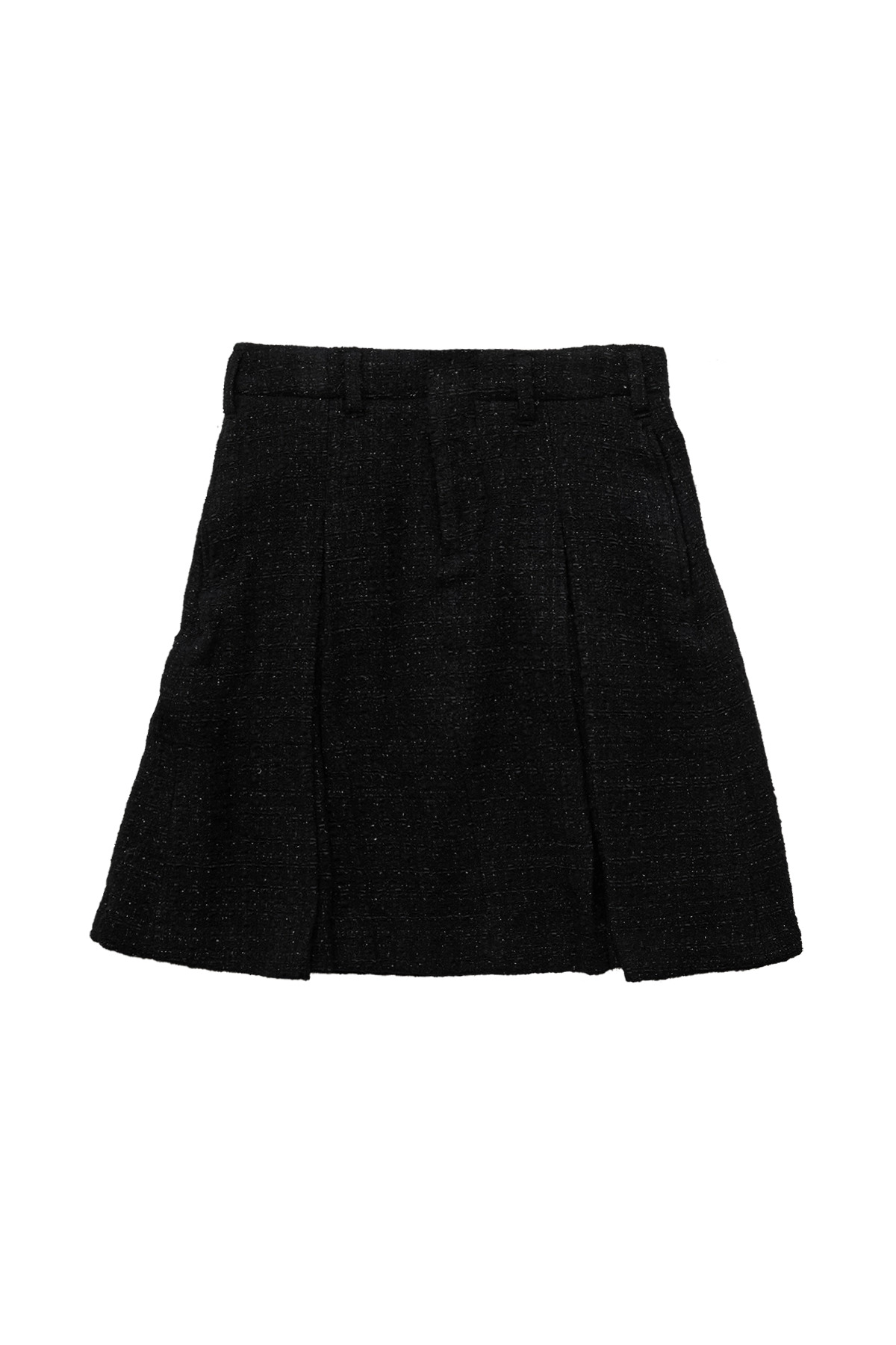 Black Tweed Pleats Midi Skirt