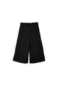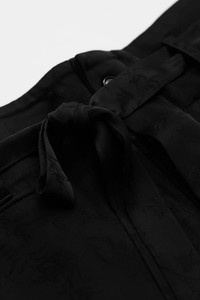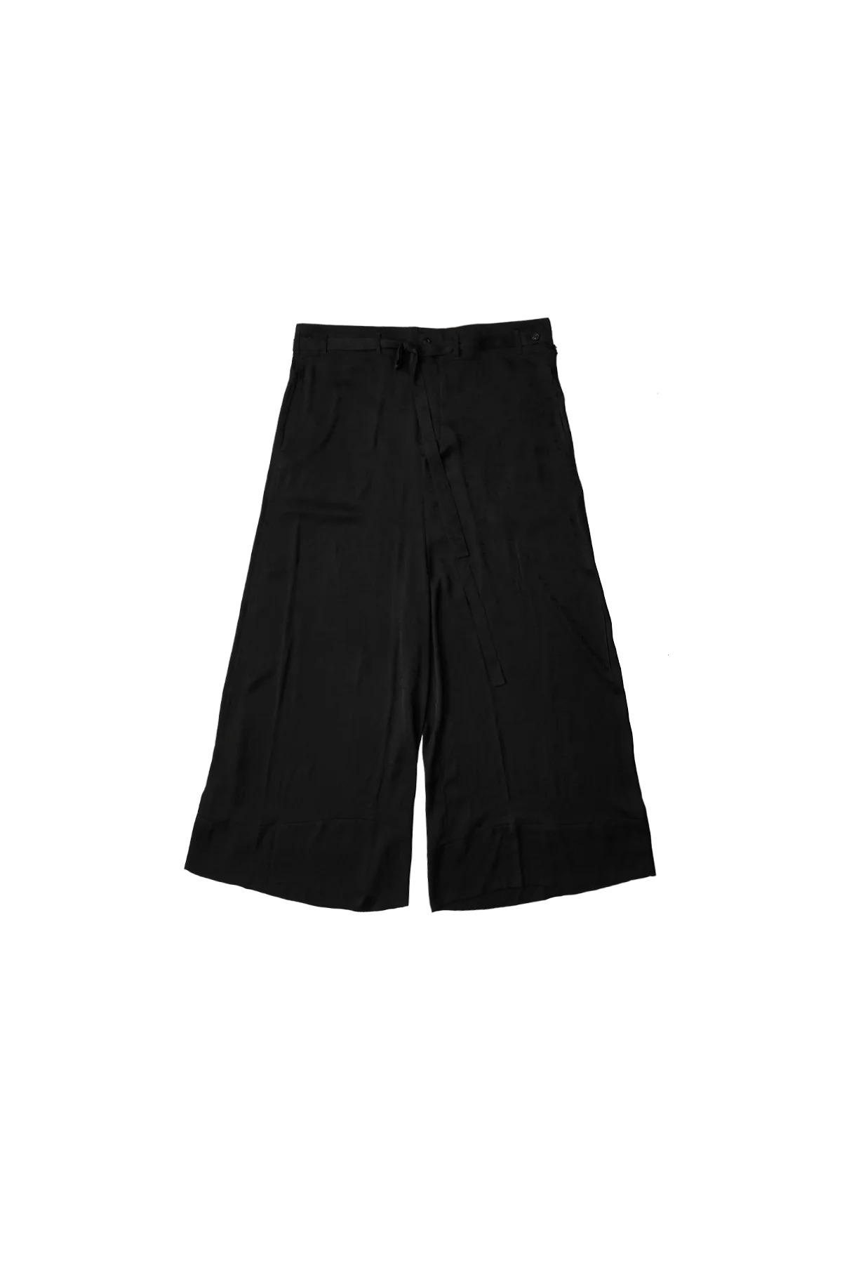 The Ann Demeulemeester Bruse Wide Lounge Pants featuring a relaxed baggy silhouette, wide leg, ruffled waistband, gathered self-tie belt, and side and back pockets. DETAILS - Wide-leg - Relaxed silhouette - Ruffled waistband - Self-tie belt - Side pockets - Back pockets Sizing: - True to size Material: 79% Viscose / 21% Silk Made in Italy Product codes: - SKU: ESSX/ANN/SS25/B0012744FA611099/Black/S - UPC: 8059690428801