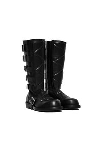 Ann Demeulemeester Jace Biker calf-high buffed boots featuring multiple adjustable buckled straps, padded quilted vamp panel, inner side-zip closure, leather lining, stacked leather midsole and block heel, and polished leather sole with rubber injection. This item is final sale and is not eligible for return or exchange. DETAILS - Calf-High with 1.25" Heel - Padded Quilted Vamp Panel - Multiple Straps with Pin-Buckle Closures - Inner Zip Closure - Buffed Leather Lining - Stacked Leather Midsole and Block Heel - Polished Leather Sole with Rubber Injection Sizing: - True to size Material: 100% Leather Sole: Leather + Rubber Made in Italy Product codes: - SKU: ESSX/2402MR23LT141099/black/42 - UPC: 8059690336618