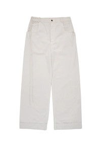 Ann Demeulemeester Michael 5-Pockets High Comfort Trousers balance structure with ease. Designed with five-pocket styling, belt loops, a removable signature grosgrain ribbon, and a button closure, the trousers feature turn-up hems, a wide leg, and a floor-length silhouette. The baggy fit creates a modern, relaxed profile. Fit Notes Oversized fit by design For a narrower fit, size down two sizes from your usual DETAILS Belt loops with removable grosgrain ribbon Five-pocket styling Button closure Turn-up hems Wide-leg, baggy fit Floor length Material: 100% Cotton Made in Italy Product codes: - SKU: ESSX/ANN/AW25/B0010308FA038003/White/48 - UPC: 8059690463949