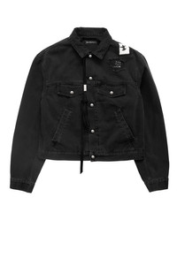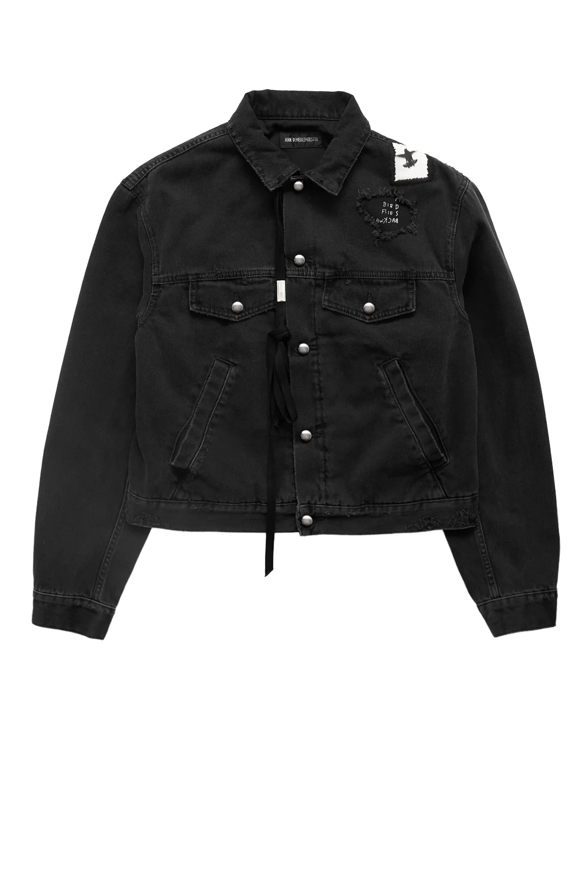 Ann Demeulemeester Raf 5-Pockets Standard Blouson With Printed Patches is crafted in Italy from smooth lamb leather, combining refined craftsmanship with functional detailing. Designed with a collar, front button closure, and a removable signature grosgrain ribbon, the jacket features flap chest pockets, side pockets, and buttoned cuffs. Its boxy, regular fit delivers a timeless, versatile silhouette. Fit Notes Fits true to size Intended for a structured, boxy shape DETAILS Collar with removable grosgrain ribbon Front button closure Button-flap chest pockets Side pockets Buttoned cuffs Regular boxy fit Material: 100% Lamb leather Made in Italy Product codes: - SKU: ESSX/ANN/AW25/B0013237FA662070/Gray/48 - UPC: 8059690505649