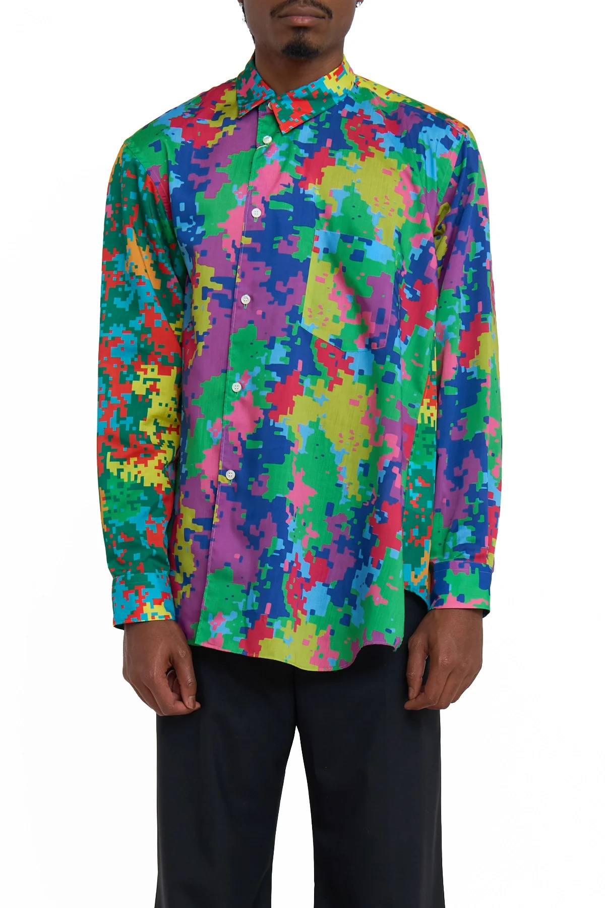 The Cdg Homme Plus Lawn Camo Print Asymetrical Shirt in a lightweight semi-sheer fabrication featuring an offset placket that gives a slightly twisted silhouette. Model is 5'10 and wears size medium DETAILS - Lightweight - Digital camo print - Asymmetrical silhouette Sizing: - True to size Material: Polyester Made in Japan Product codes: - SKU: ESSX/CHP/AW25/PPB013051/Multi/S - UPC: 3607936601294
