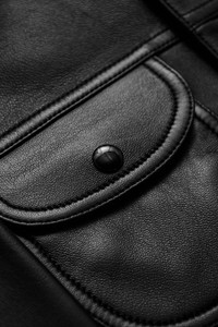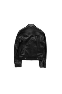 The Courreges Signature Vintage Leather Trucker Jacket featuring sleek styling, front patch and slash pockets, and tonal logo embroidered at the hem. Lined. DETAILS - Lightweight - Glossy lambskin - Trucker styling - Long-sleeved - Snap closure - AC logo at hem - Front patch + slash pockets Sizing: - True to size Material: Lambskin Made in Poland Product codes: - SKU: ESSX/COU/SS25/VESLBL024CV00059999/Black/52 - UPC: 1403558051897