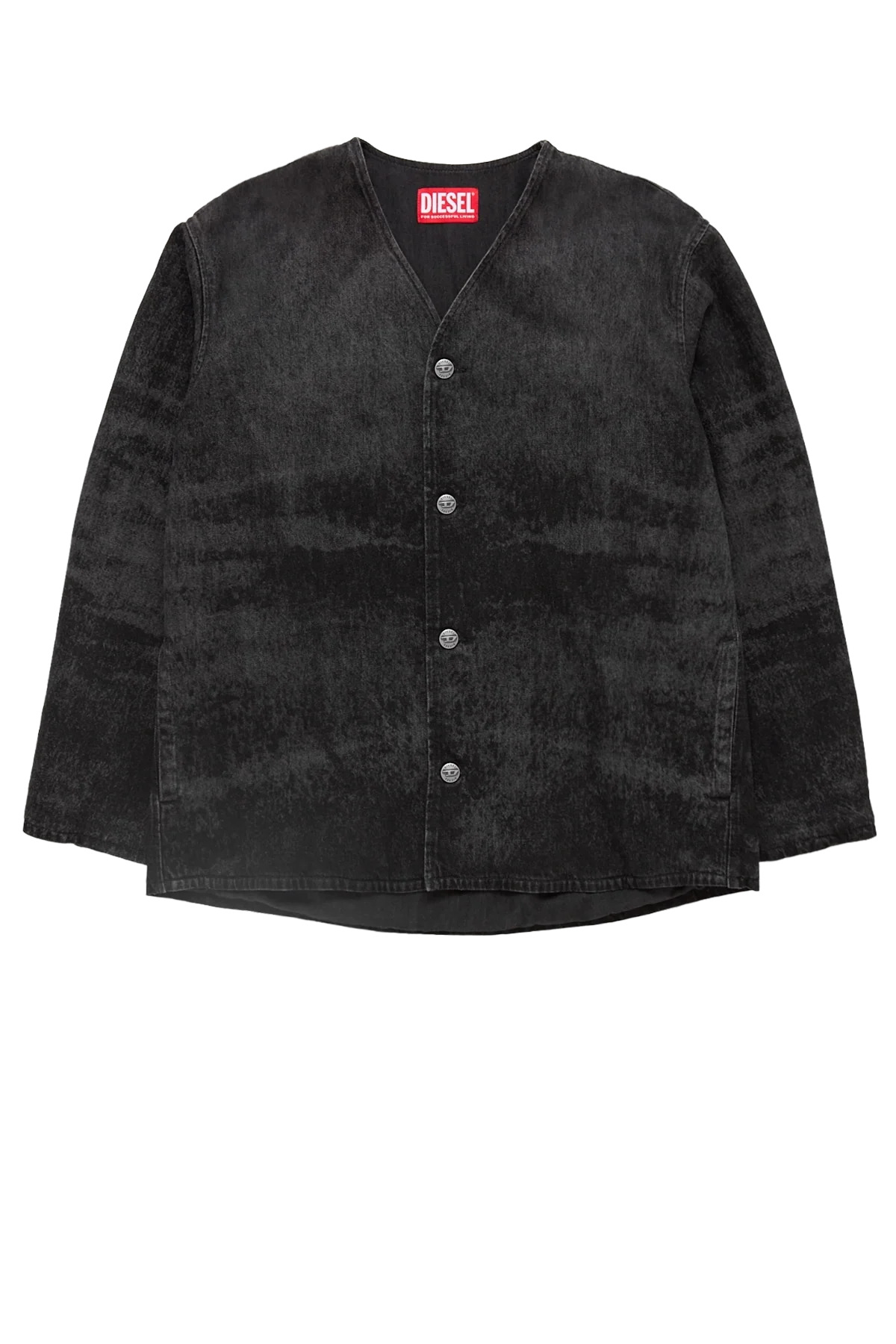 Diesel Denim Cardigan Jacket provides structure through its tailored silhouette, while the bold back detail offers visual impact from every angle. With premium hardware and Diesel’s rebellious spirit built in, it’s a versatile piece for both layered looks and stand-alone styling. DETAILS Rigid heavy-weight denim Classic collar Button-front closure Side entry pockets Long sleeves with button cuffs Branded buttons and stitching Material: 80% Cotton, 20% Hemp Product codes: - SKU: ESSX/DIE/AW25/A21637007DB02/Black/L - UPC: 8051209583988
