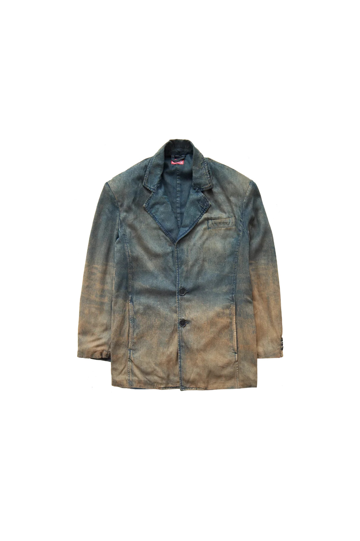 The Diesel Oversized Degrade Denim Blazer featuring a relaxed oversized silhouette, extra-long sleeves, dual side pockets, a chest pocket, and fluid fabrication treated with spray and laser techniques to create a degrade finish on the hem, enhanced by smudged effects in sandy tones. DETAILS - Unisex - Lightweight - Faded/smudged/ombre effect - Dual front buttons - Buttoned cuffs - Side pockets - Chest pocket - Interior pocket - Back vent - Unlined Sizing: - True to size Material: 100% Lyocell Made in Tunisia Product codes: - SKU: ESSX/DIE/AW25/A18354068TF01/Blue/M - UPC: 8051209174544