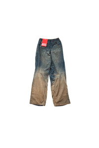 The Diesel Relaxed Degrade Drawstring Jeans in a fabrication treated with spray and laser techniques to create a degrade finish on the hem, enhanced by smudged effects in sandy tones. They feature an oversized silhouette, mid-rise, wide-leg, elasticated drawstring waist, side pockets, logo embroidered above the dual back pockets, and legs detailed with ergonomic cuts and visible seams that enhance the fluid look. DETAILS - Lightweight - Faded/smudged/ombre effect - Paneled construction - Relaxed-fit - Wide-leg - Gathered knees - Elasticated waist - Adjustable drawstrings with metal toggles - Side + pockets - Logo embroidered above back pocket Sizing: - True to size Material: 100% Lyocell Made in Tunisia Product codes: - SKU: ESSX/DIE/AW25/A19049068TF01/Blue/28 - UPC: 8051209178207